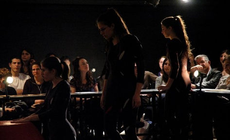 The performance examined the questions of assigned sex and gender, through a feminist technoscience lenses, experimenting with "feminine" movement engaged with technology. The work arise from a devised process of experimenting with choreography and projection mapping technology.